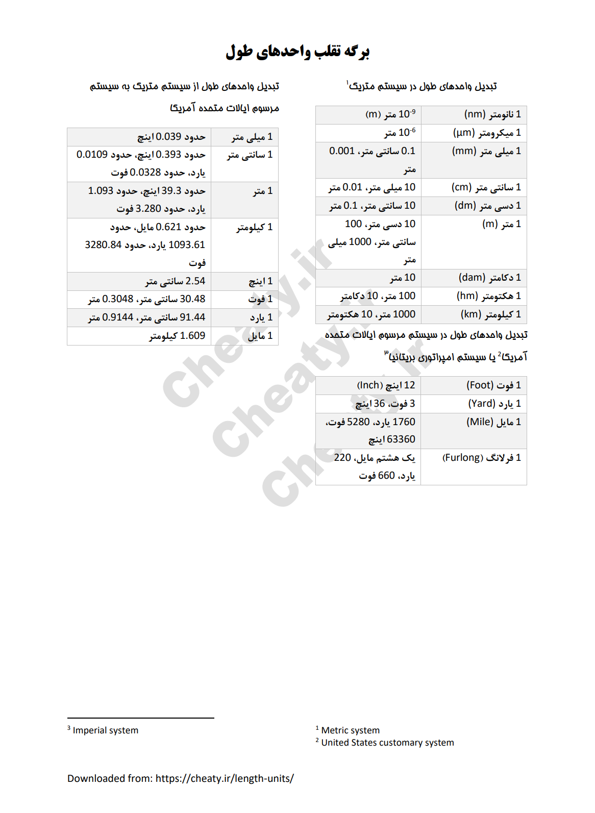 تبدیل واحدهای طول در سیستم مرسوم ایالات متحده آمریکا2 یا سیستم امپراتوری بریتانیا3